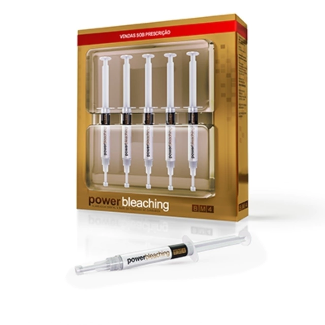 O power bleaching é composto de um gel clareador à base de peróxido de carbamida para uso caseiro (supervisionado por um dentista) disponível em 3 apresentações de concentração (10%, 16% e 22%). Destinado ao clareamento de dentes vitais e não vitais, que incorpora novas tecnologias e bases científicas para oferecer o resultado almejado com o máximo de conforto durante o tratamento.