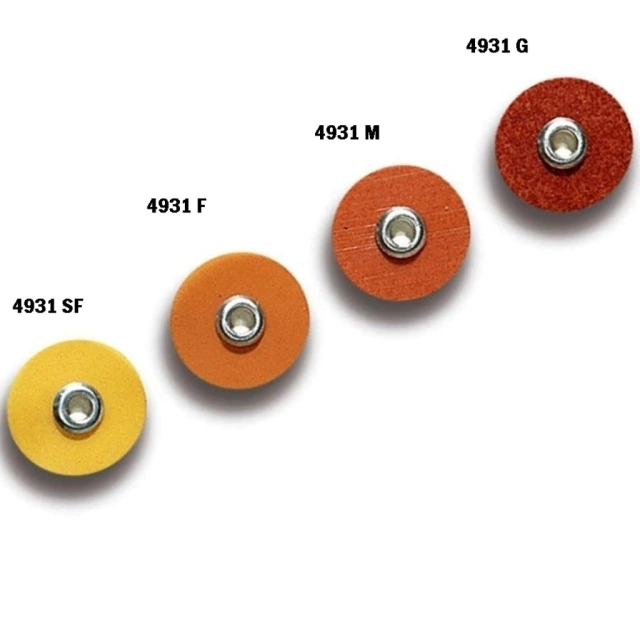 Com eficiência, diferentes granulações utilizadas na sequência correta resultam em uma excelente lisura de superfície e, consequentemente, em restaurações muito estéticas. O centro metálico facilita o encaixe do mandril, que é específico para o sistema e deve ser acoplado em contra-ângulo. Para remoção de excessos, deve ser usado o disco de granulação grossa ou média. É possível conseguir alto brilho e lisura superficial seguindo-se a sequência recomendada do abrasivo grosso até o superfino.