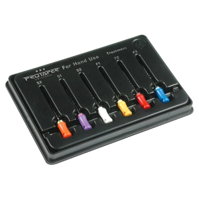 As limas ProTaper for Hand Use oferecem máxima segurança e sensibilidade ao profissional, aliadas à rapidez e à capacidade de corte do sistema ProTaper. A sequência de trabalho é idêntica a do sistema ProTaper, facilitando a migração futura para o sistema rotatório.