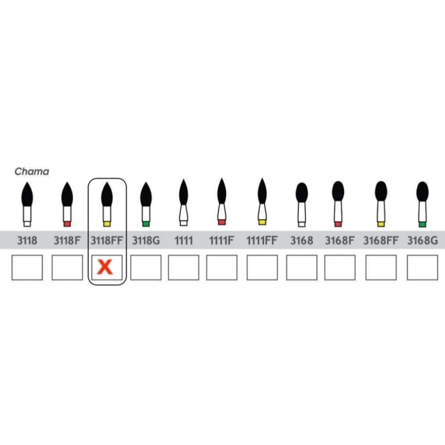 Permitem a confecção de bisel côncavo em esmalte nas cavidades preparadas, tanto em dentes anteriores como posteriores. Opcionalmente podem ser utilizadas girando em baixa velocidade para dar acabamento no ângulo cavo-superficial, a fim de remover prismas fragilizados. O tamanho e/ou diâmetro da ponta a ser utilizada deve ser determinado em função da extensão da cavidade. As pontas em forma de chama de granulação fina (F) e extra-fina (FF) são uteis ainda para o refinamento das superfícies vestibular e palatinas de restaurações nos dentes anteriores. Podem também ser utilizadas no desgaste para ajuste oclusal. A ponta diamantada 1111, em especial, está indicada para o biselamento (“flare”) da caixa proximal em cavidades para restaurações metálicas fundidas com e sem redução oclusal. A remodelação da face palatina de preparos para coroa total em dentes anteriores pode ser realizada com este tipo de ponta.