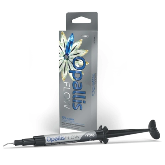 Opallis Flow é uma resina composta microhíbrida radiopaca, de média viscosidade, fotopolimerizável.